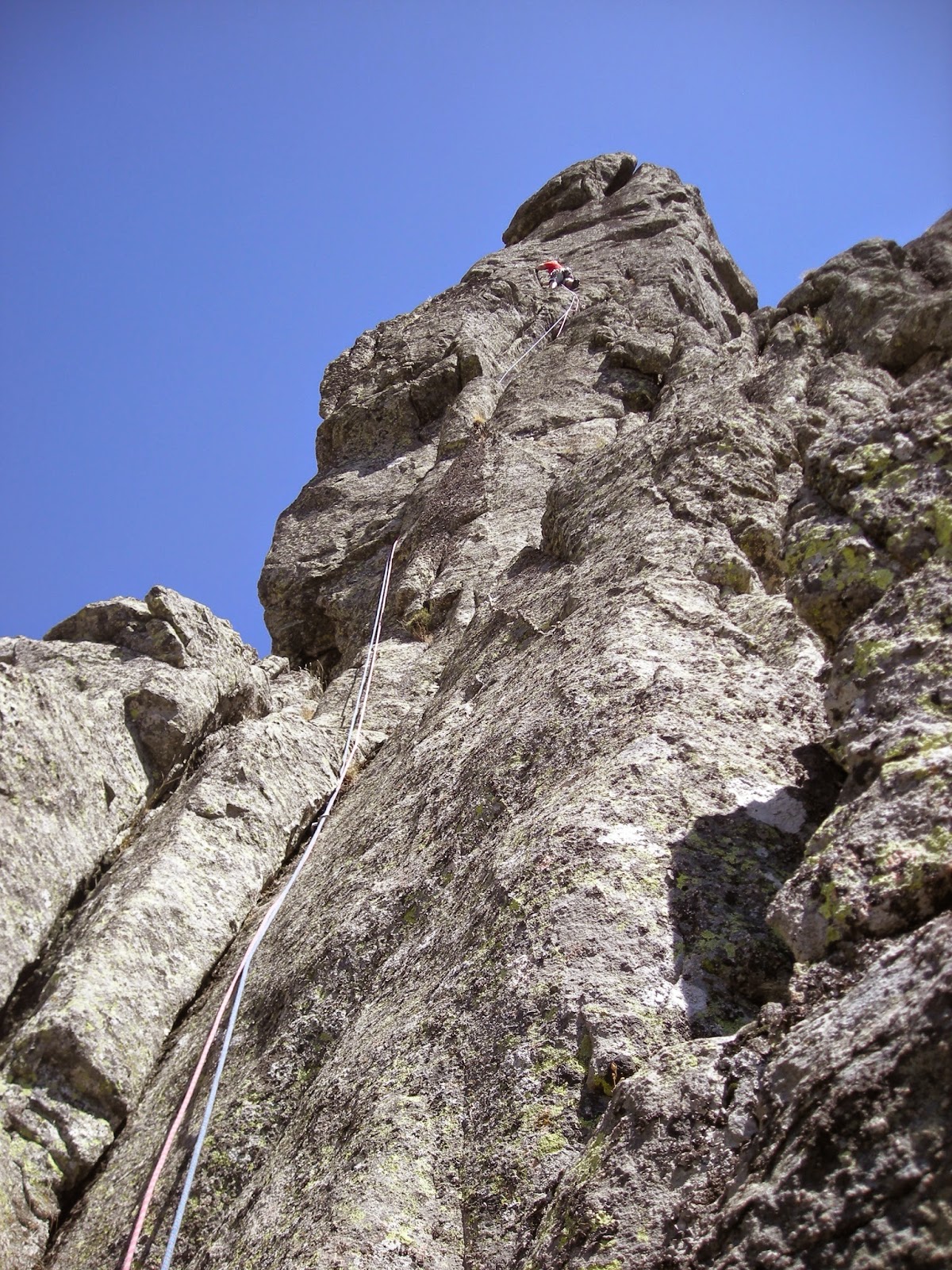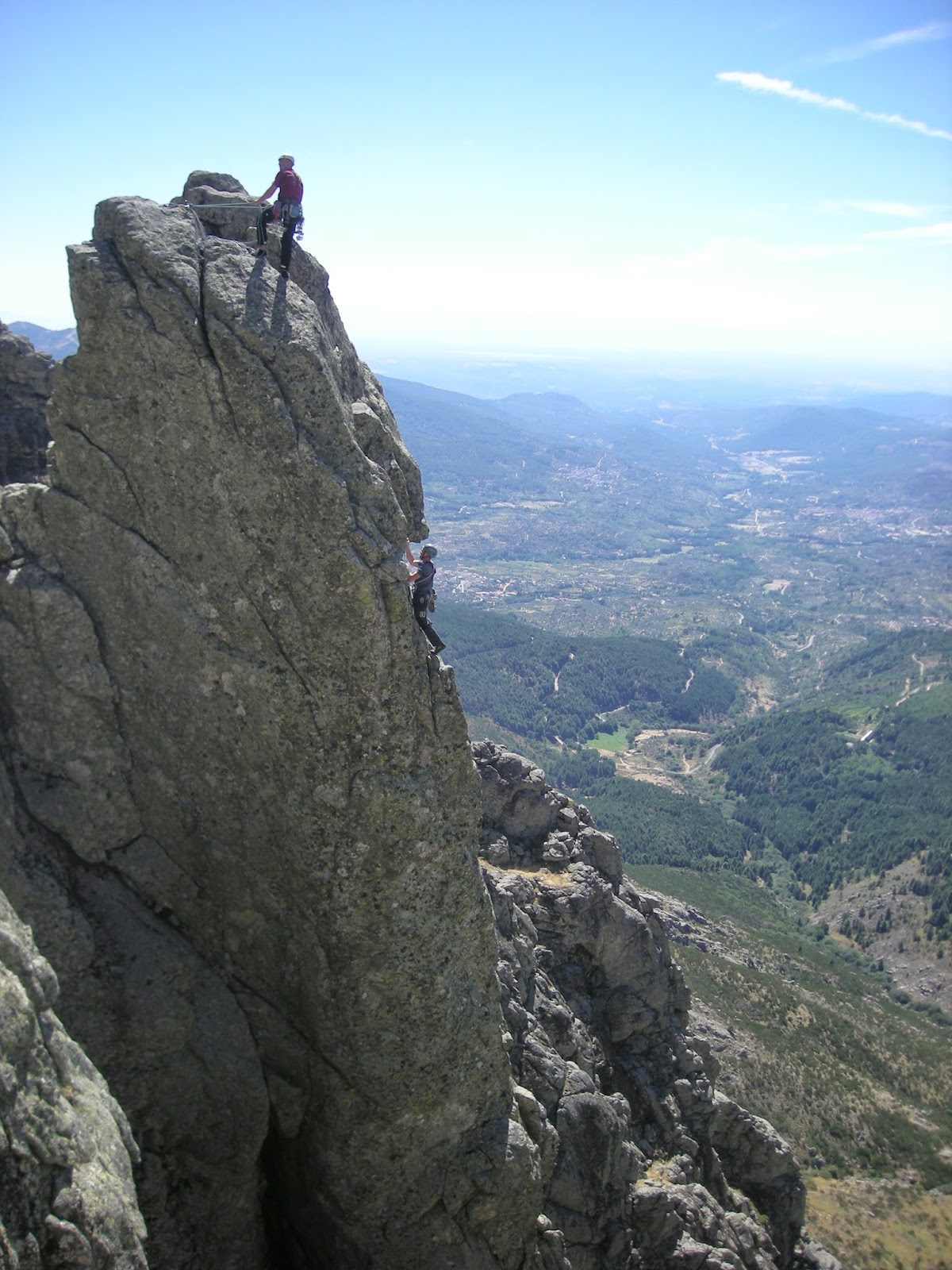 Muro final sobre granito excelente de agarritos, muy vertical, seguros a distancia no de Ao, en torno a 6c liberado a vista o A0 / 6b, tramo final muuyy aéreo...